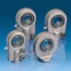 Spherical plain bearings (rod ends / joint bearings) are widely used, e.g. in hydraulic and pneumatic cylinders, and are suitable for medium radial loads. Hard-chrome on PTFE (self-lubricating) designs must not be greased for optimal performance and service life. Maintenance-free designs generally have lower load ratings than steel-on-steel.